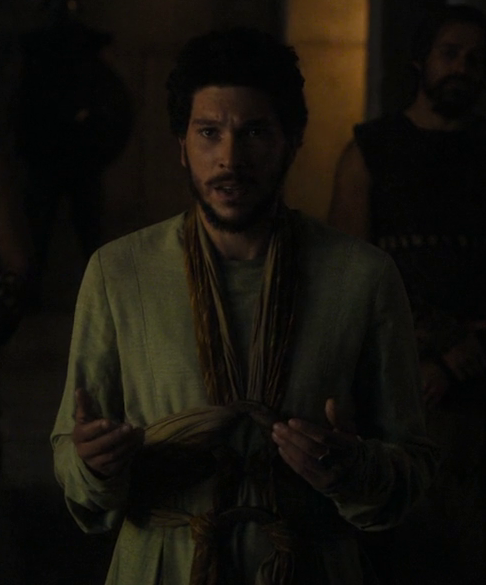 And so she’s off to her dark, but surprisingly un-dank dungeon to visit with Hizdahr, who really, really doesn’t want to be dragon food. To his surprise, Daenerys has come not to punish him but to tell him that she will agree to the reopening of the fighting pits, although only for free men–there will be no slaves in Meereen while she is alive. Also, by the way, she’s going to marry Hizdahr to prove her commitment to the Meereenese people. Joel Fry really is great in this episode, and I’m starting to think that the show’s underuse of him in the past was a criminal oversight. I also loved Emilia Clarke in this episode. I’ve always found her portrayal of Daenerys to be a bit stiff and often unpleasantly melodramatic, but I found myself really believing in her performance here. Yes, please, more like this.