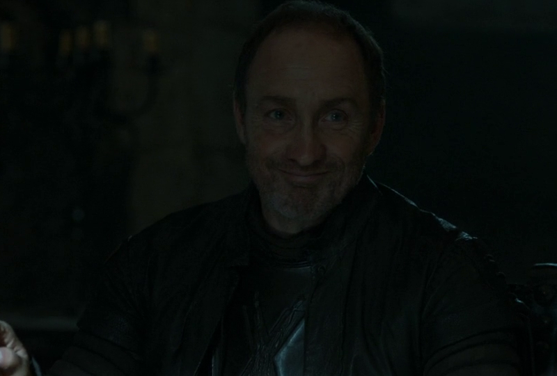 I think the real star of this family dinner is Michael McElhatton’s face, though. His expressions as Roose Bolton are just incredible, and his face near the end of dinner, right before he and Walda announce their pregnancy made me straight up cackle in delight. The only thing better than Roose’s face is Sansa’s–I loved her little smirk as she observes Ramsay’s dismay at the news. I would like to see more of Walda, but maybe that will come later.