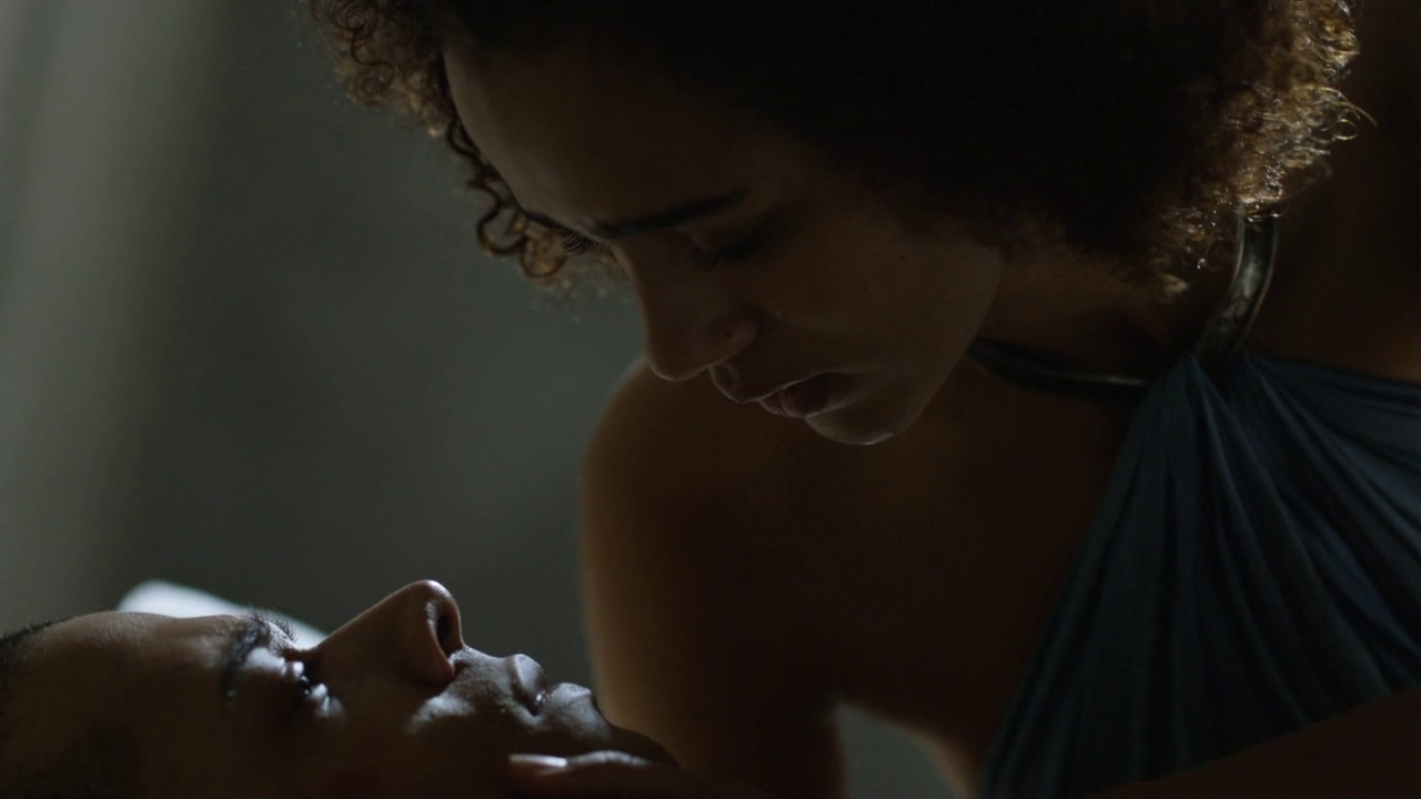 Back in Meereen, Missandei is present when Grey Worm finally wakes up three days after the fight in the alley. Grey Worm is very decidedly in a funk, but his brush with death gets him to finally admit his feelings to Missandei and they share a very sweet kiss.